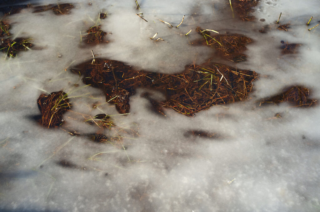 Un sabot craque la croûte gelée et transperce une mare, ma monture se cabre. Je me relève du sol et la voilà partie au milieu des fougères brûlées.