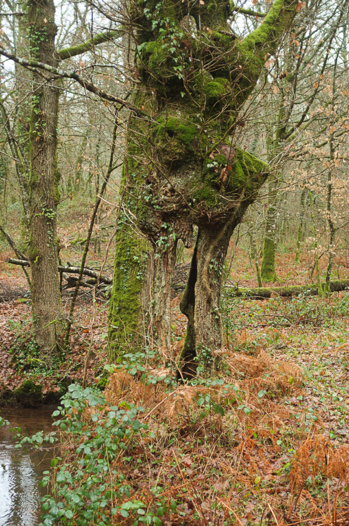 J’aborde cette forêt mythique de Brocéliande par une hêtraie magnifique parsemée d’anciens troncs imposant la révérence. C’est beau un arbre quand on le laisse vivre. La rivière délimite un camp militaire et j’entends des tirs d’entraînement tout le long du chemin. D’une certaine façon, je m’attendais à autre chose en pénétrant ces lieux.