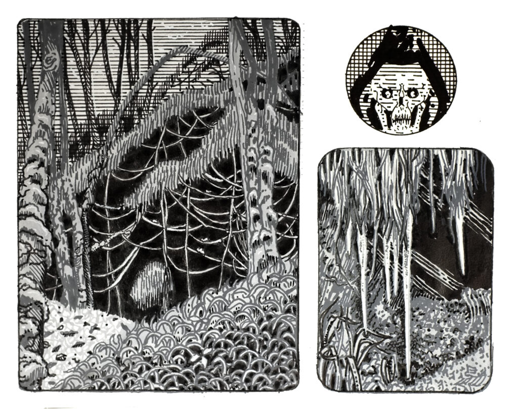 Puis tout se calme, le vent a cessé, les oiseaux se taisent et la marmite se repose. Une lueur nocturne dévoile et dessine le contour des arbres à fagots.