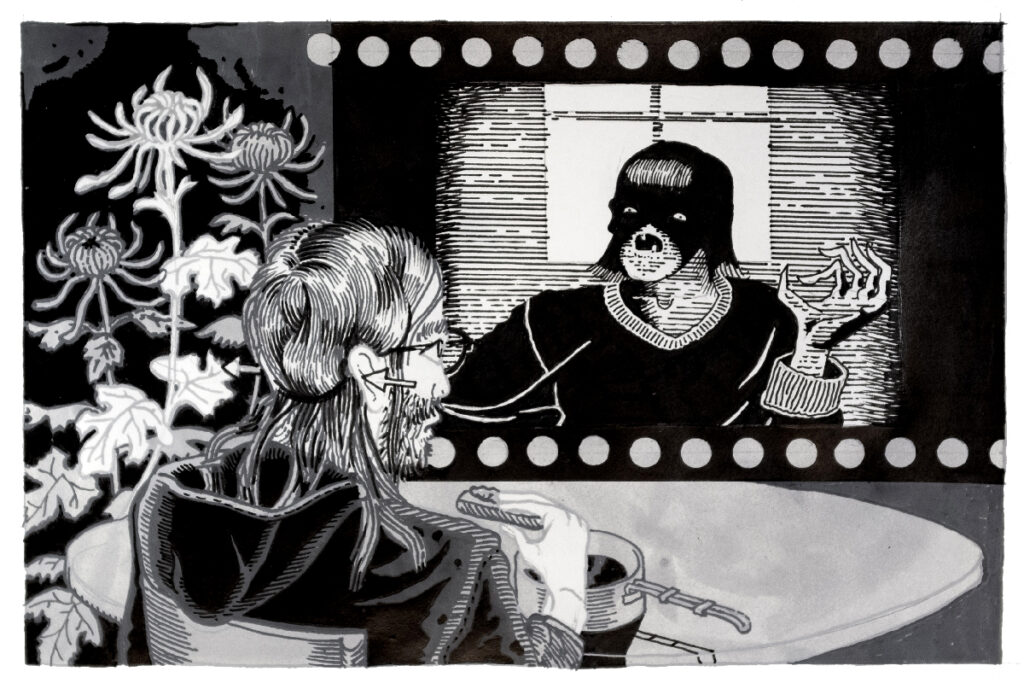 Je me permets de confier que je suis dans le même cas et on échange sur le sujet. Rapidement, elle me replonge dans ce que j’avais tenté d’occulter et va loin, un peu trop loin. Dans son récit, je retrouve des éléments que j’ai déjà lus et d’autres choses plus incohérentes. Elle me dit avoir été infectée par sa mère, hérédité, elle parle d’une phase 4 qui attaque le cerveau, la mémoire, et s’adresse à moi en me disant : « t’es dans la merde ! » Aïe, où j’ai atterris? Je sors ces informations par l’autre oreille sans passer par la case cerveau et je file. Il pleut, je fuis.